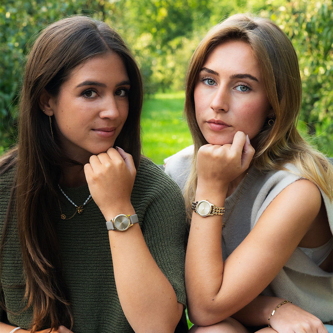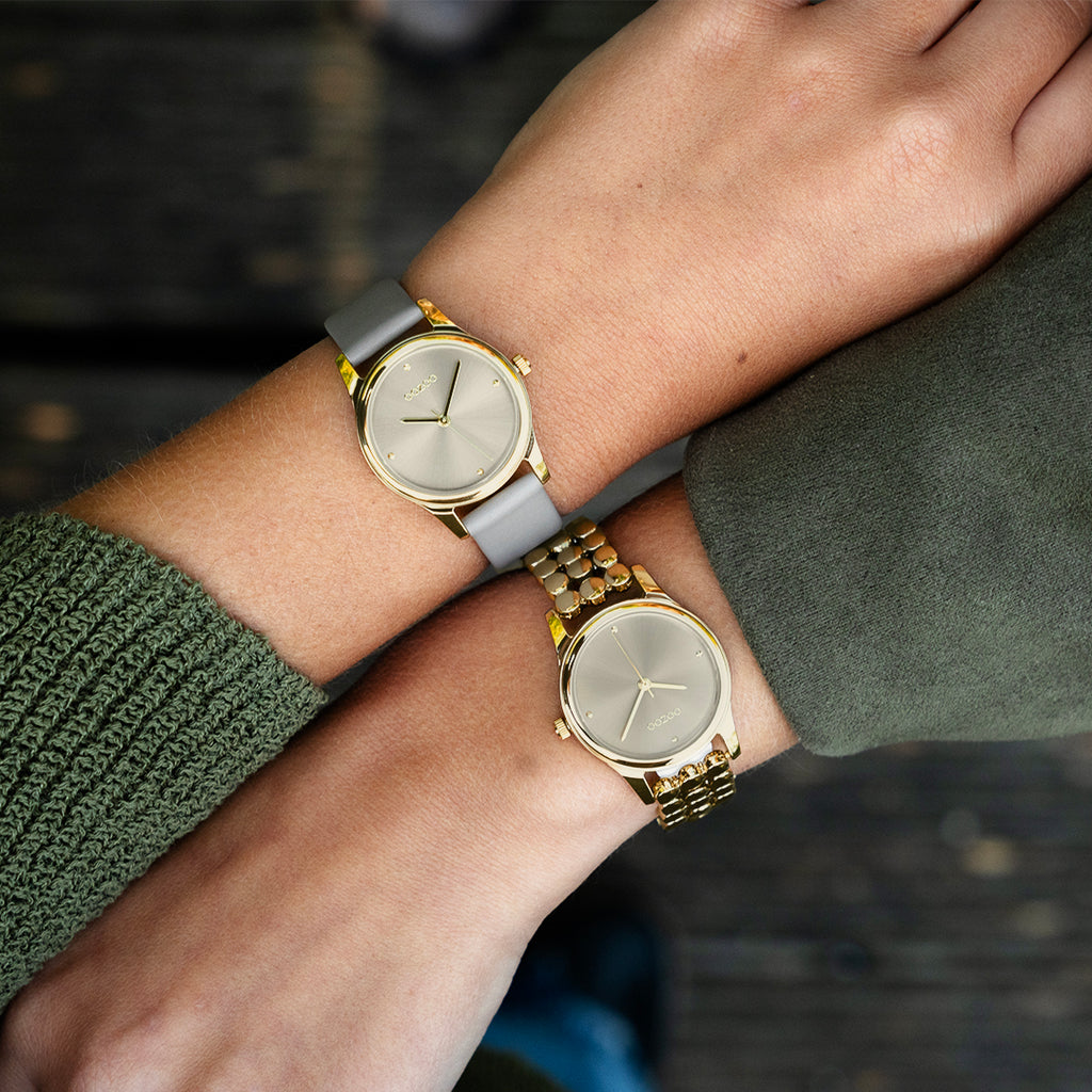 Gold coloured OOZOO watch with taupe leather strap - C11625