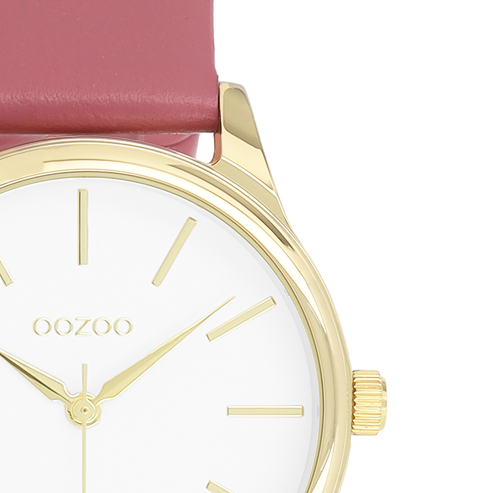 Gold coloured OOZOO watch with pink leather strap - C11676