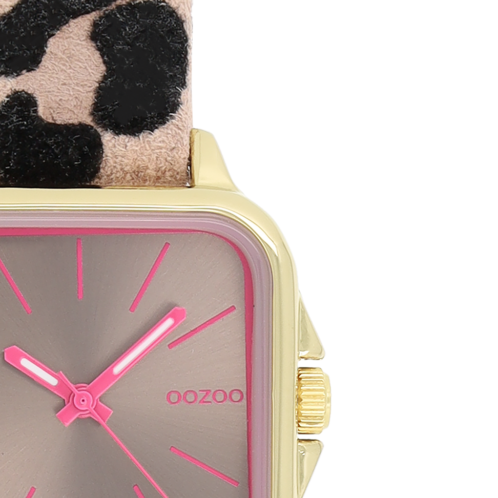 Stand out with this beautiful square ladies design from the trendy OOZOO Timepieces collection. The C11611 has a leopard print brown/black leather strap and 34 mm gold coloured metal watch case. You are making quite the fashion statement with this taupe sunray dial, fluo pink stripes digits and matching hands. This essential watch for your wardrobe has a mineral glass, stainless steel backplate and is nickel safe. This watch has a 2ATM Japanese movement and is covered by a 2 year warranty (see section 3 of our Refund, shipping & warranty policy).
