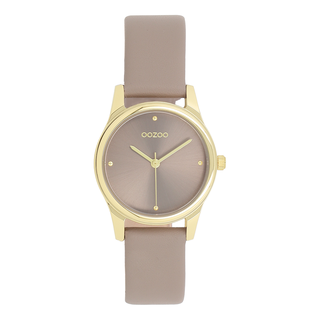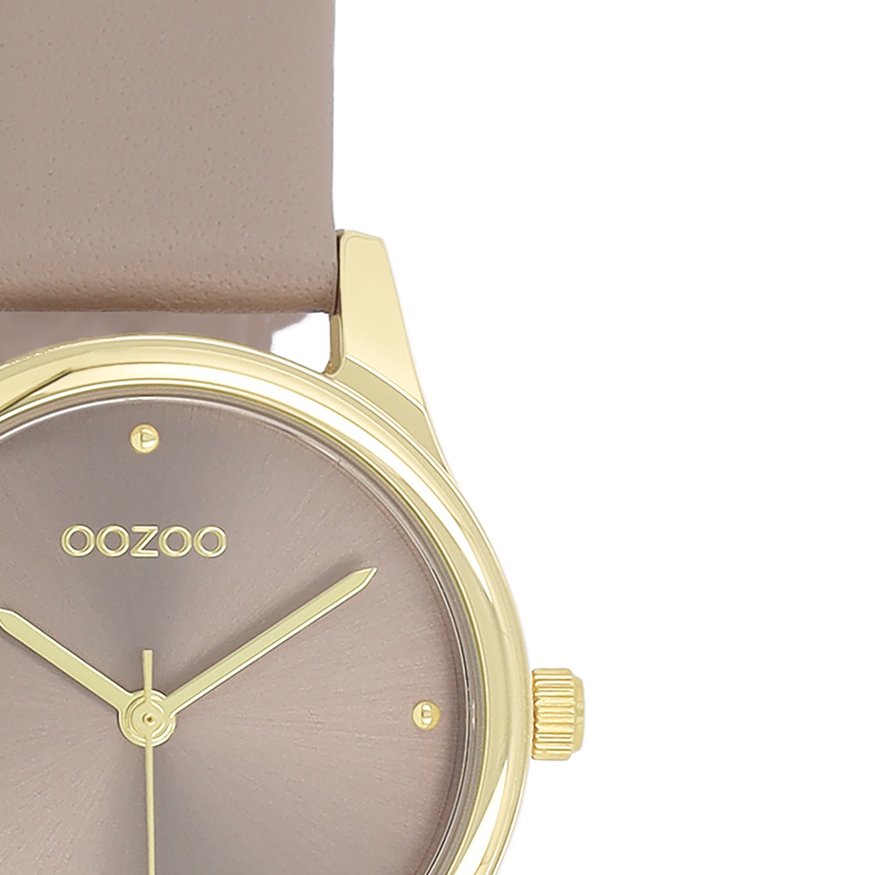 Gold coloured OOZOO watch with taupe leather strap - C11625
