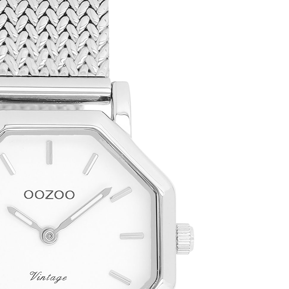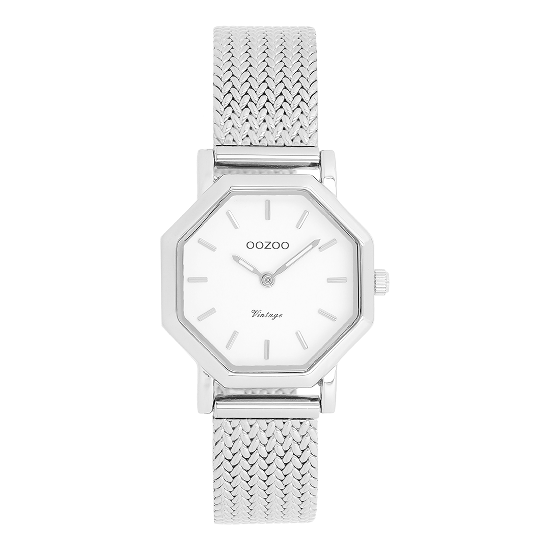 The classic look stays key in this trendy series and therefore, this octagon OOZOO vintage design with a playful wink is the season must-have! This ladies watch is the perfect combination of fashion and comfort with its 28x28 mm silver coloured metal watch case and white dial. The silver coloured metal v-mesh bracelet makes this watch a trendy accessory, which you can wear every day. The dial has silver coloured stripes digits and matching hands. The C20435 adds the sparkle to your outfit. The mineral glass lays in a mm slim metal watch case with IP-plating. This design has a stainless steel backplate and is nickel safe. This watch has a 2ATM Japanese movement and is covered by a 2 year warranty (see section 3 of our Refund, shipping & warranty policy).