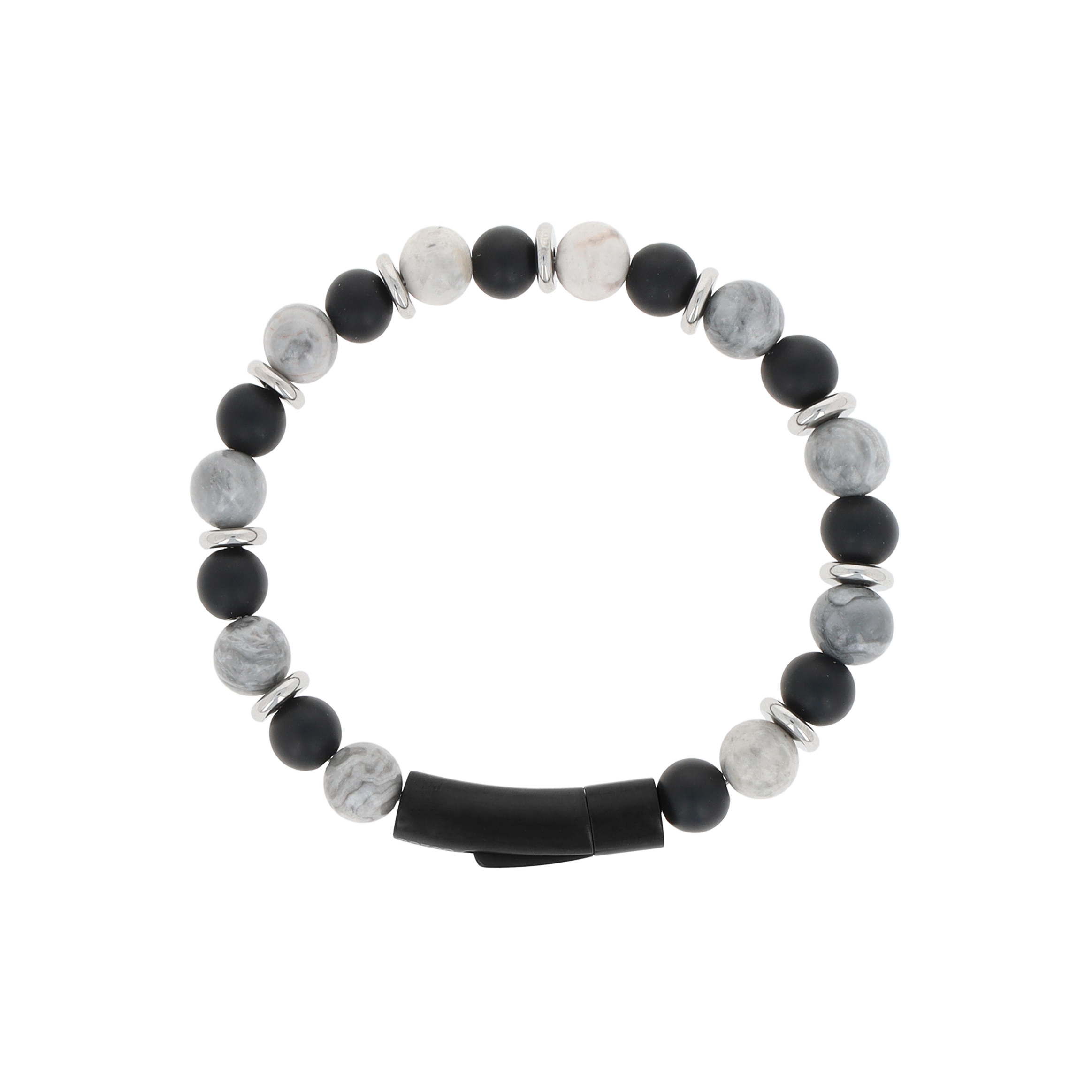 OOZOO Jewellery is a great addition to your personal accessories collection. This beautiful black onyx and map stone stone bracelet is the perfect accessory to complete your outfit. The stone bracelet is 19,5cm long and has a strong stainless steel clasp. Carefully selected materials come together in this collection to create a timeless and distinctive design. This product (SB-1068-195) is covered by a 3 months warranty (see section 3 of our Refund, shipping & warranty policy).