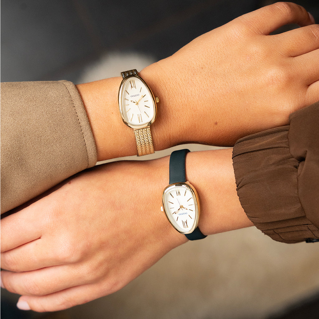 Stand out with this beautiful egg-shape ladies design from the trendy OOZOO Timepieces collection. The C11642 has a gold coloured metal v-mesh bracelet and 31x22 mm gold coloured metal watch case. You are making quite the fashion statement with this champaign dial, gold coloured stripes and Roman numerals digits and matching hands. This essential watch for your wardrobe has a mineral glass, stainless steel backplate and is nickel safe. This watch has a 2ATM Japanese movement and is covered by a 2 year warranty (see section 3 of our Refund, shipping & warranty policy).