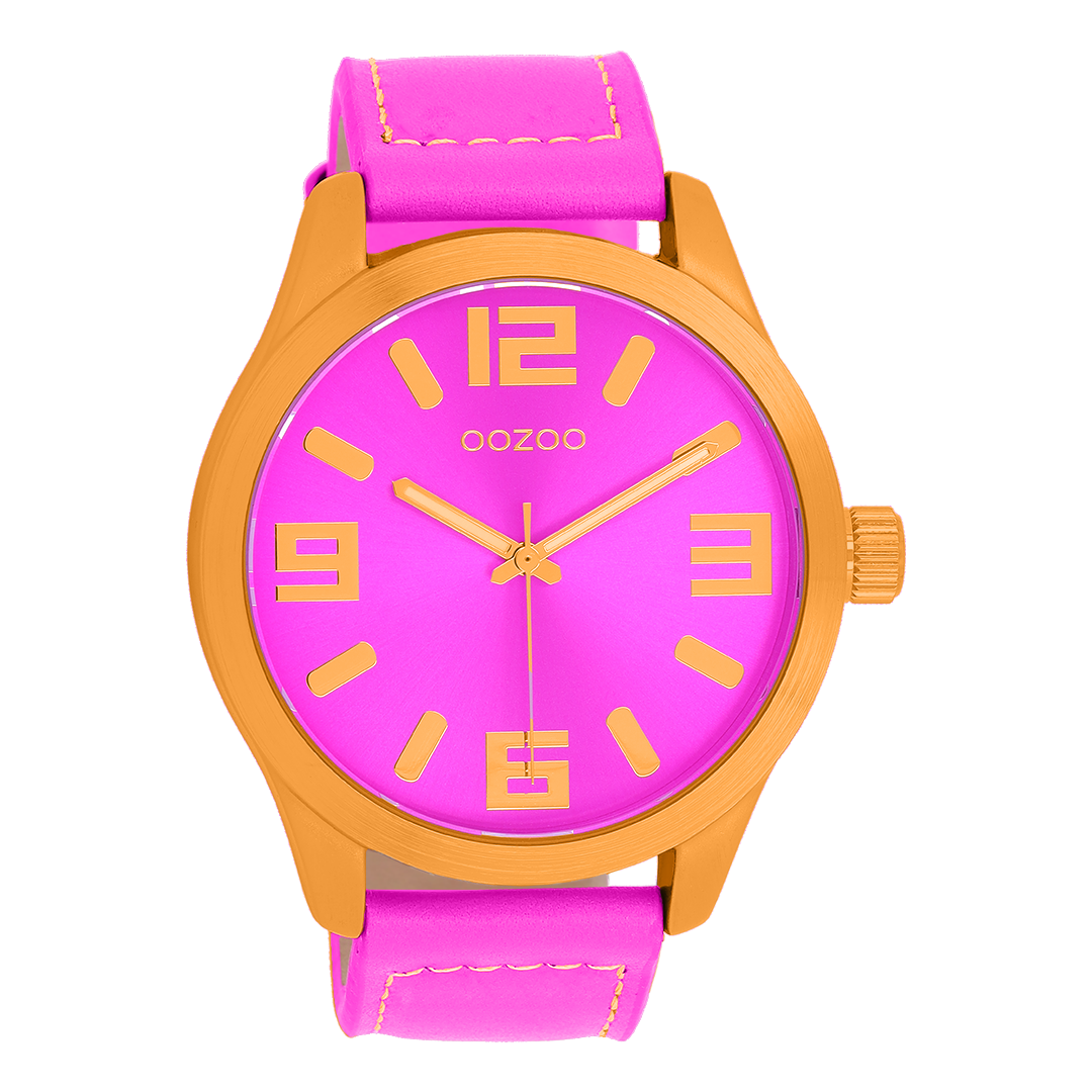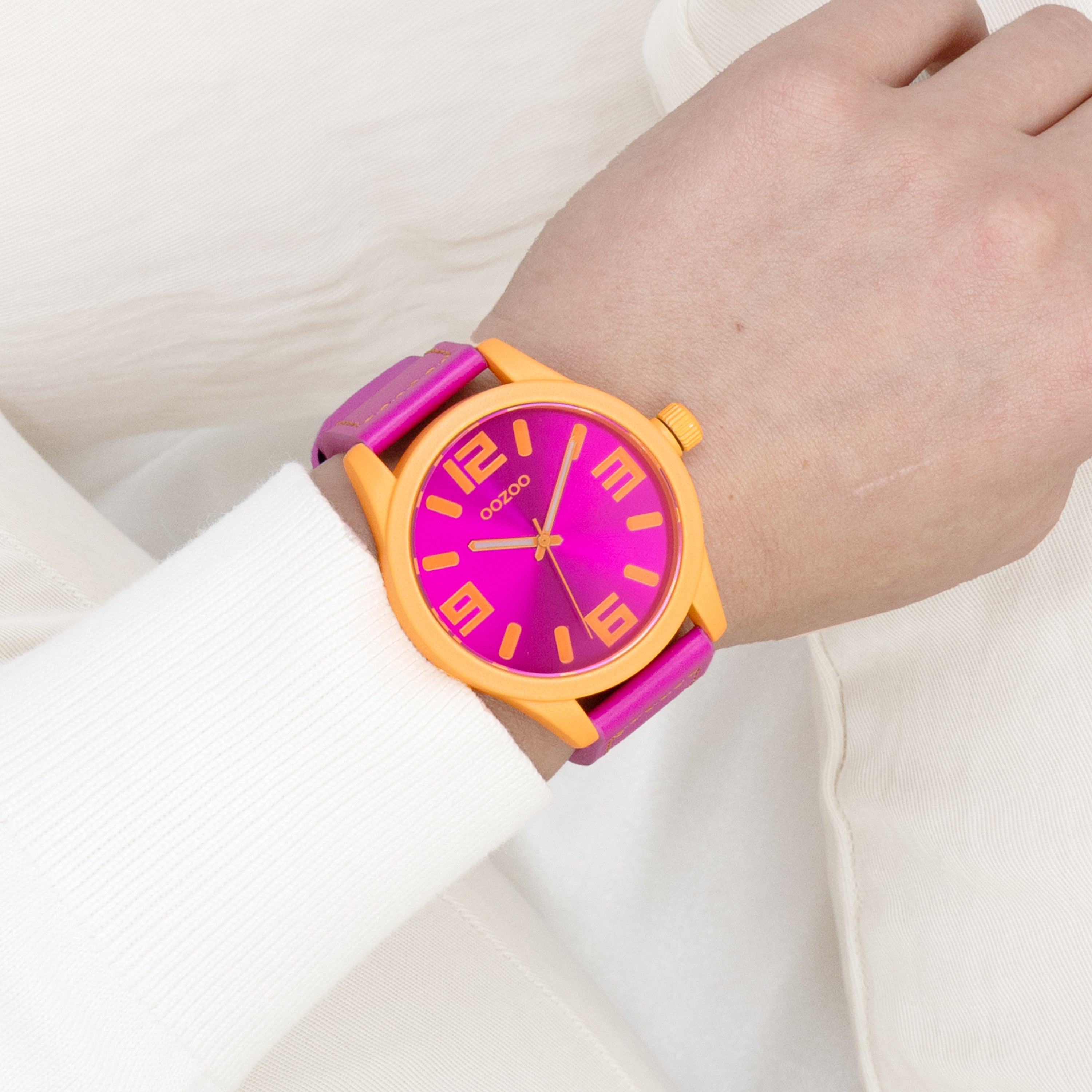 Fluo orange OOZOO watch with fluo pink leather strap – C11650